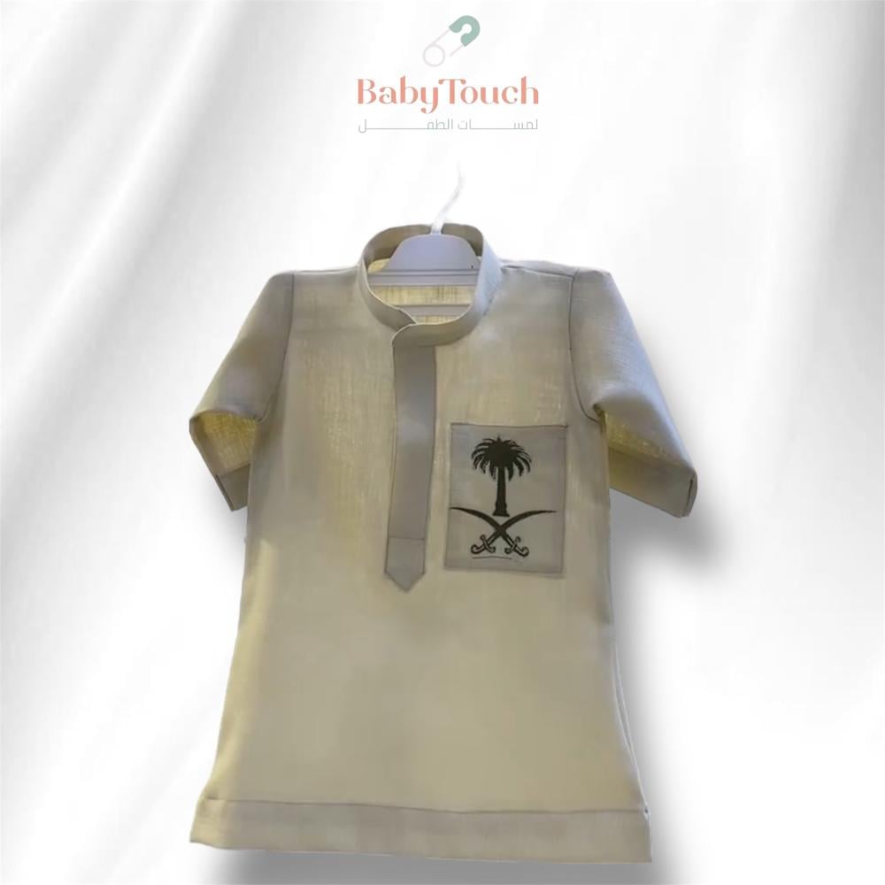 ثوب مع تطريز ( أسم + سيفين و نخلة )